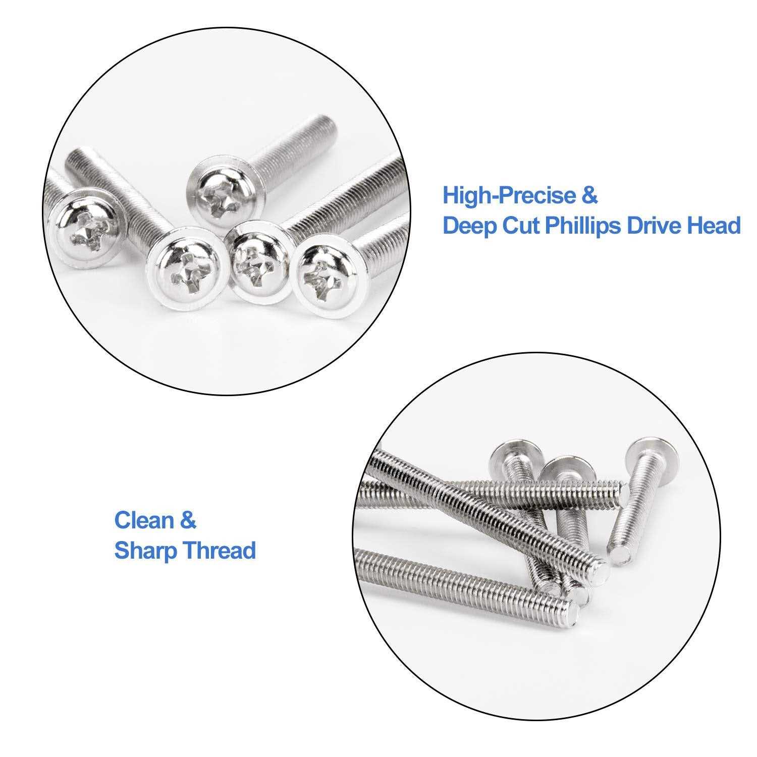 Wellocks Cabinet Pulls Knobs Screws M4 25-50mm 96 Pcs Assortment Machine Screws Pan Washer Head Metal Phillips Screws Kit for Cabinet Drawer