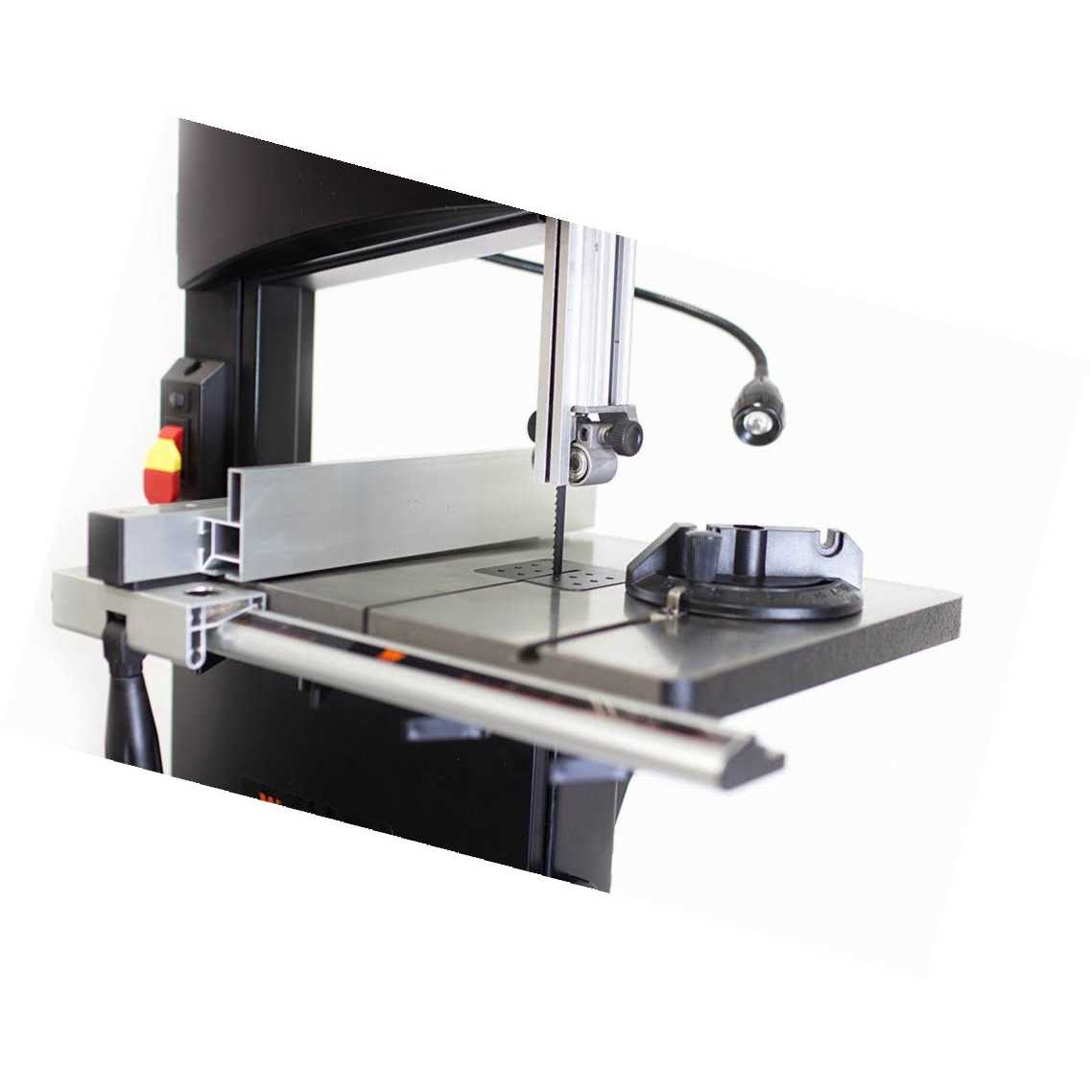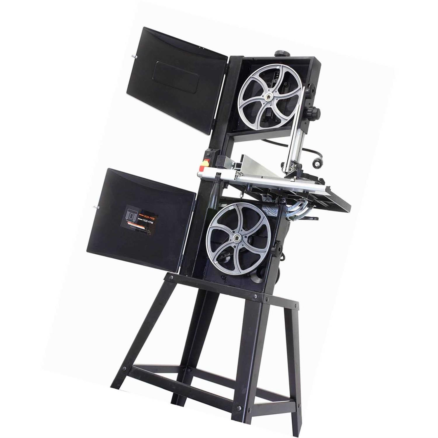 With a 3.5-amp motor and a 9-3/4-inch throat, this beast will attack boards with cuts up to six inches deep and 9-3/4 inches wide. Two-speed operation allows for speeds of either 1520 or 2620 FPM. The design of this saw uses 72-inch blades anywhere from 1/8 to 1/2 inches in size for a variety of both intricate and powerful cuts. The spacious work table measures in at 14 inches by 12-1/2 inches and can be swiveled up to 45 degrees. This package includes a flexible work light to illuminate the worktable, a three-in-one dust port to fit a variety of dust extractor hoses (1-3/4, 2-3/4 and four inches), a fence for creating straight cuts and a miter gauge for angled cuts. Ball-bearings give the blade smooth operation and a long-lasting life for years of dependable service. The easy-to-assemble stand elevates the bandsaw without sacrificing space on the shop’s work bench.