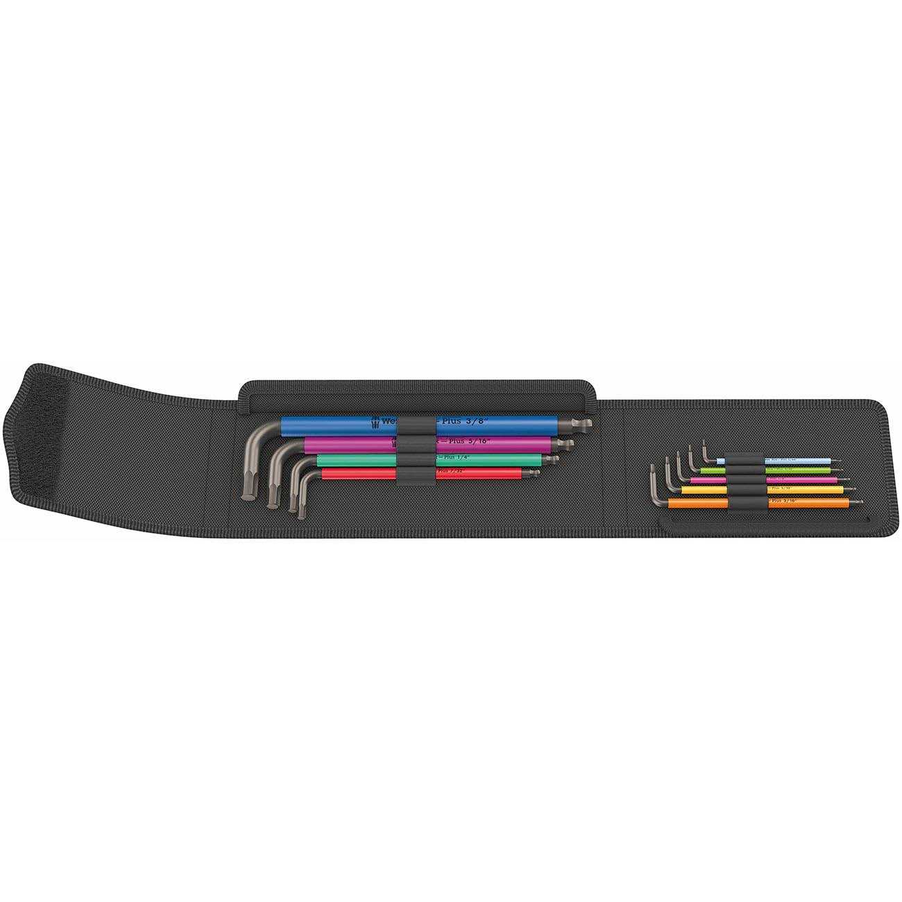 High grade steel hex key set with Wera’s patented Hex-Plus profile. This enables 20% more torque to be applied without damaging and rounding out the socket screw. Often with a damaged screwhead these hex keys will undo the screw where others fail. Made from round bar with machined ends for a precision fit and extra strength. The thermoplastic sleeve makes these keys very comfortable during use, especially over long periods and in cold conditions. High corrosion protection due to the BlackLaser surface treatment. Practical rubber clip keep the keys secure. Ball-end tip on long arm gives better access to restricted areas. Multi-coloured sleeves allow quick and easy selection of the required size.