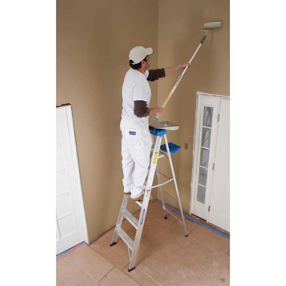Extending your reach by up to 8′, this Werner stepladder lends ample help if you choose to paint your wooden storage shed or drive some nails