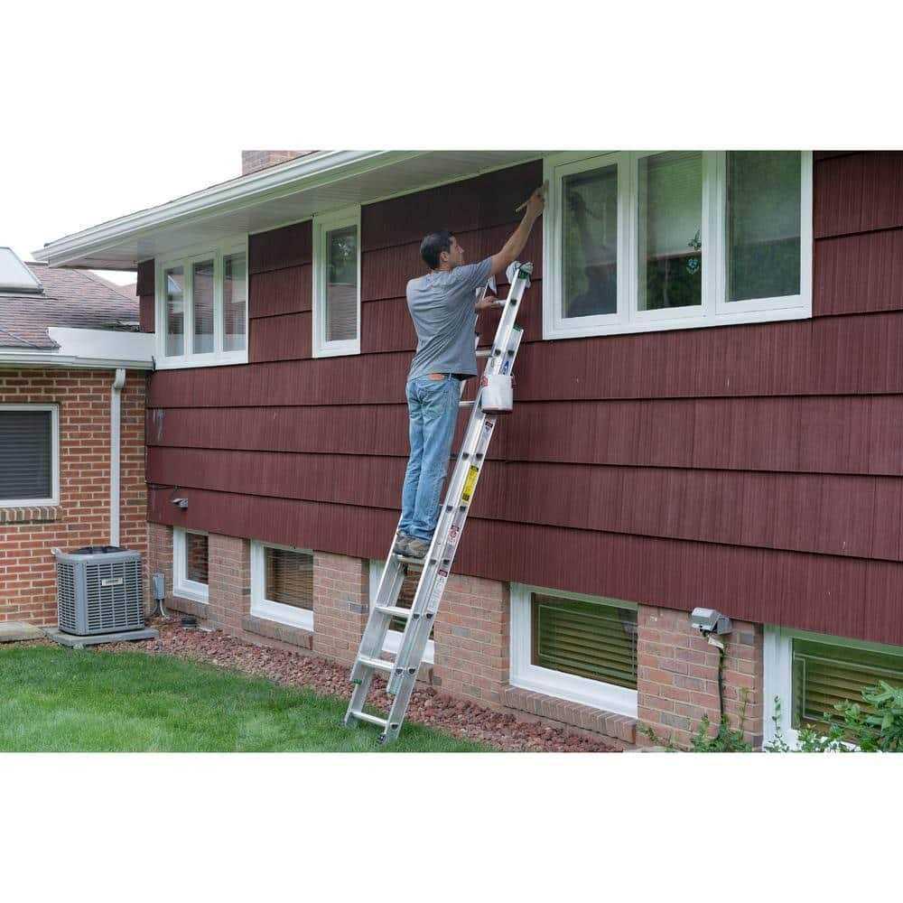 Maximum reach 23-ft Assuming a 5 ft 6 in person with a vertical 12 in reach. Exclusive ALFLO rung joint means Twist-Proof performance. 1-34-in slip-resistant Traction-Tred D-rungs. Durable extruded rung locks are spring loaded to operate smoothly. Mar-resistant end caps. Smooth operating pulley with polypropylene rope. Heavy-duty modified I-beam side rails. Durable shoe rests flat on slip-resistant pad or is held in spur position with Shu-Lok feature. Shoe rests flat or is held in spur position with Shu-Lok feature.