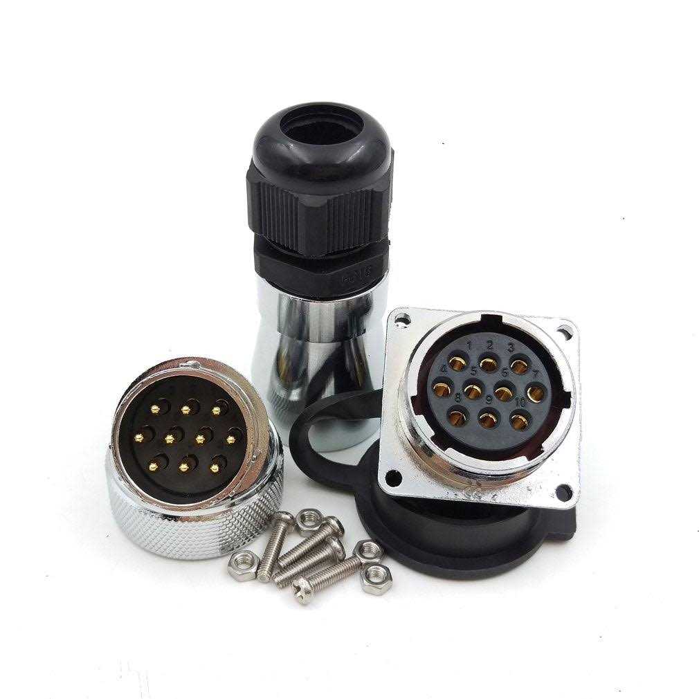 WF28 10 Pin Industrial Electrical Power Cable Connector, 10 Pins Waterproof Connector Socket IP67, Welded Male Female Aviation Bulkhead Waterproof
