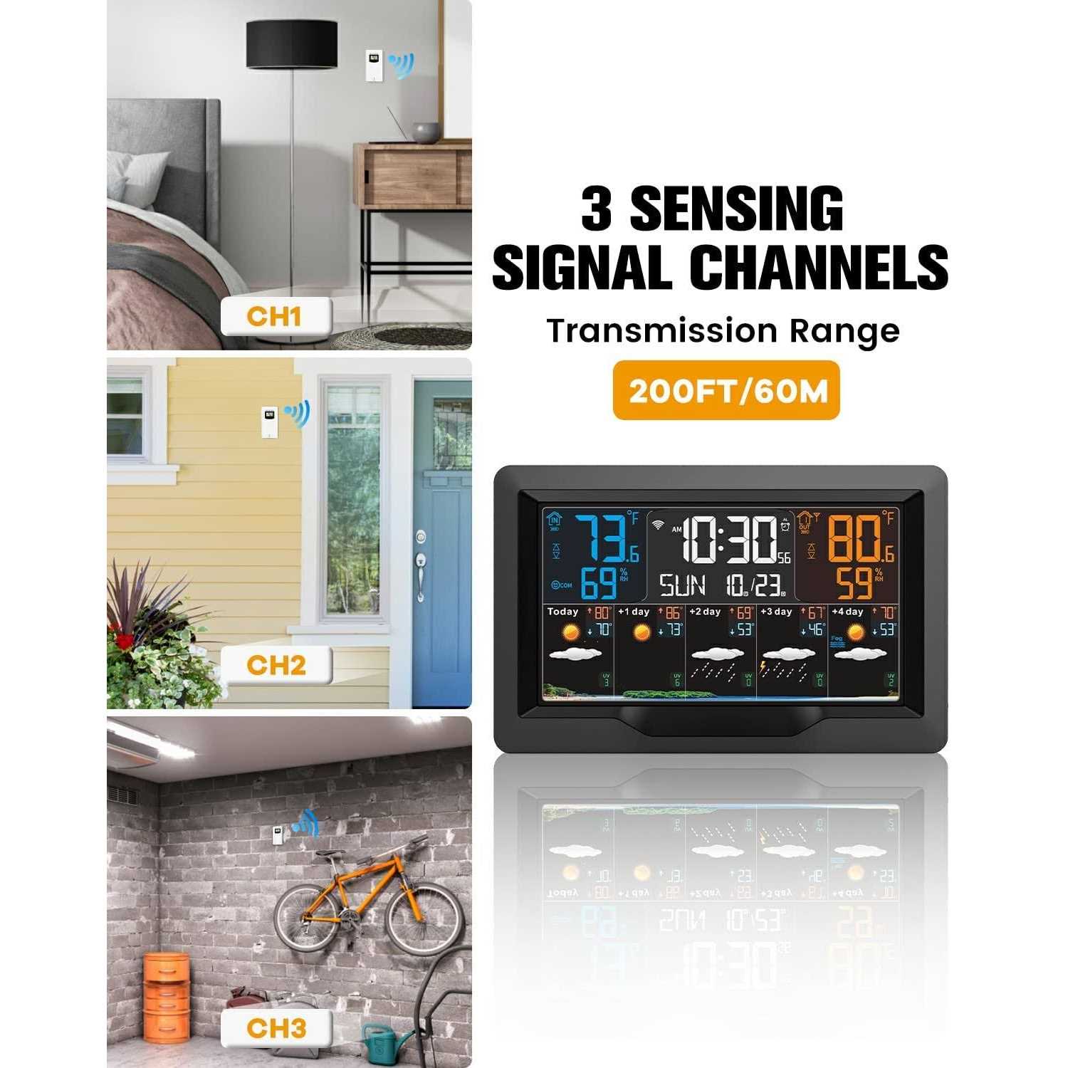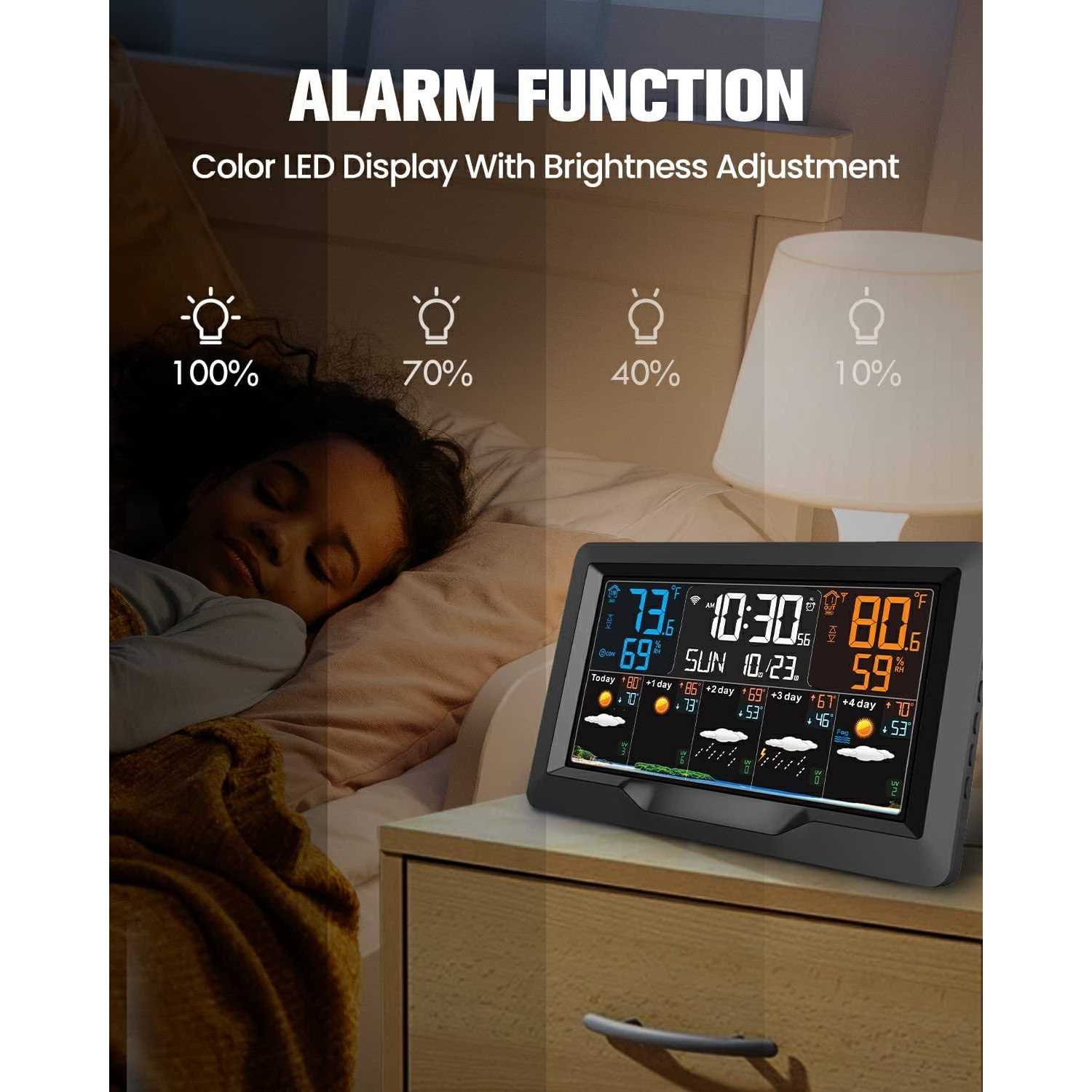 WiFi Weather Station with Wireless Indoor Outdoor Thermometer, 7.5”Large Color Display Digital Temperature Humidity Monitor with Smart Clock,