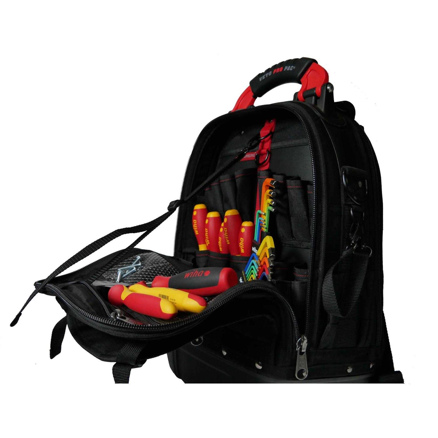 Designed for safe and comfortable transport of your Wiha Tools, the Wiha Red Stripe Tech Pac is the perfect tool carry solution for accessing areas that require climbing extension ladders, cage ladders, or walking long distances to service equipment. The Wiha Red Stripe 30 Piece Tool Kit includes: 13 Piece Ball End Color Coded Hex L-Key Set – 9 Piece Ball End Color Coded Hex L-Key Set – Metric, SoftFinish 11inOne Multi-Driver, Insulated NE Style Linemans Pliers with Crimpers 9.5, 6 Insulated SoftFinish ScrewdriversPH1, PH2, SL6.5, SL3.5, SQ1, SQ2. Gender: male.