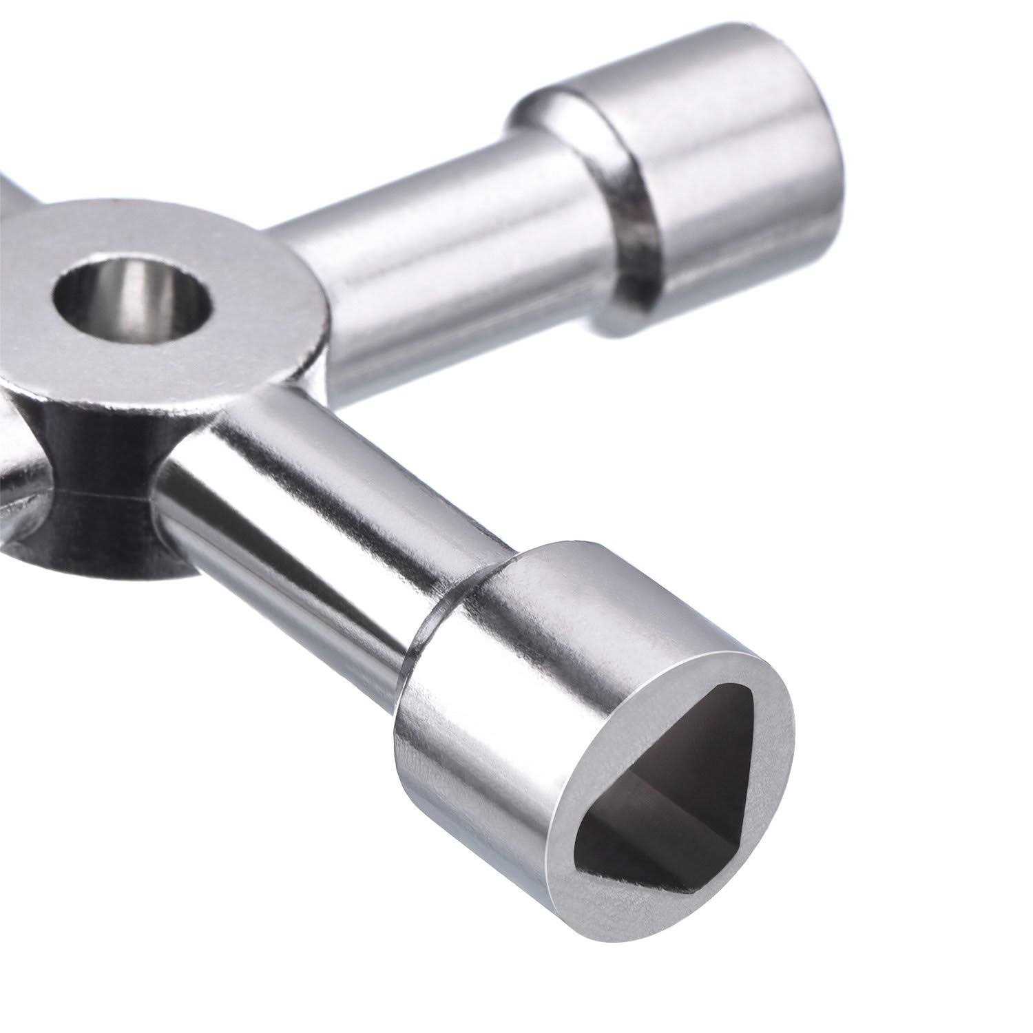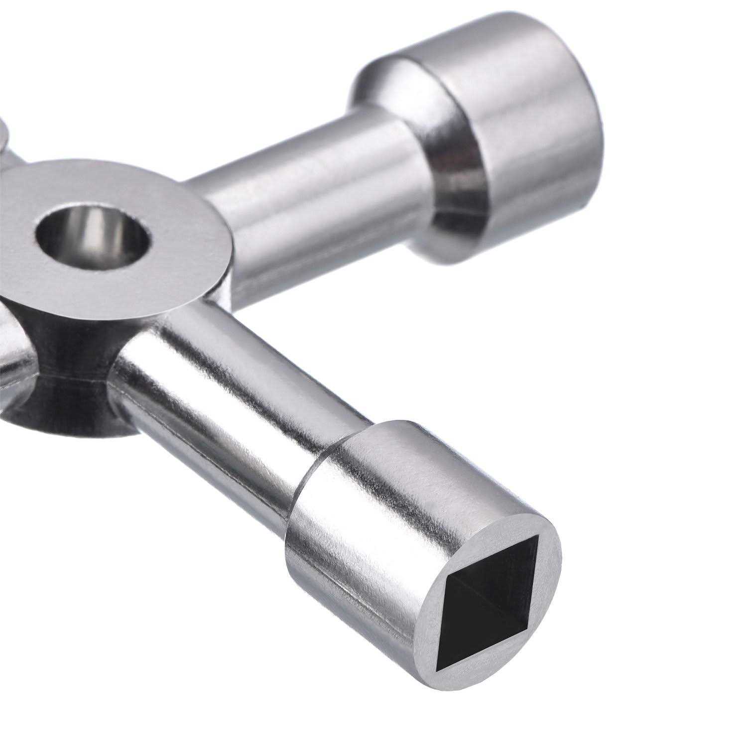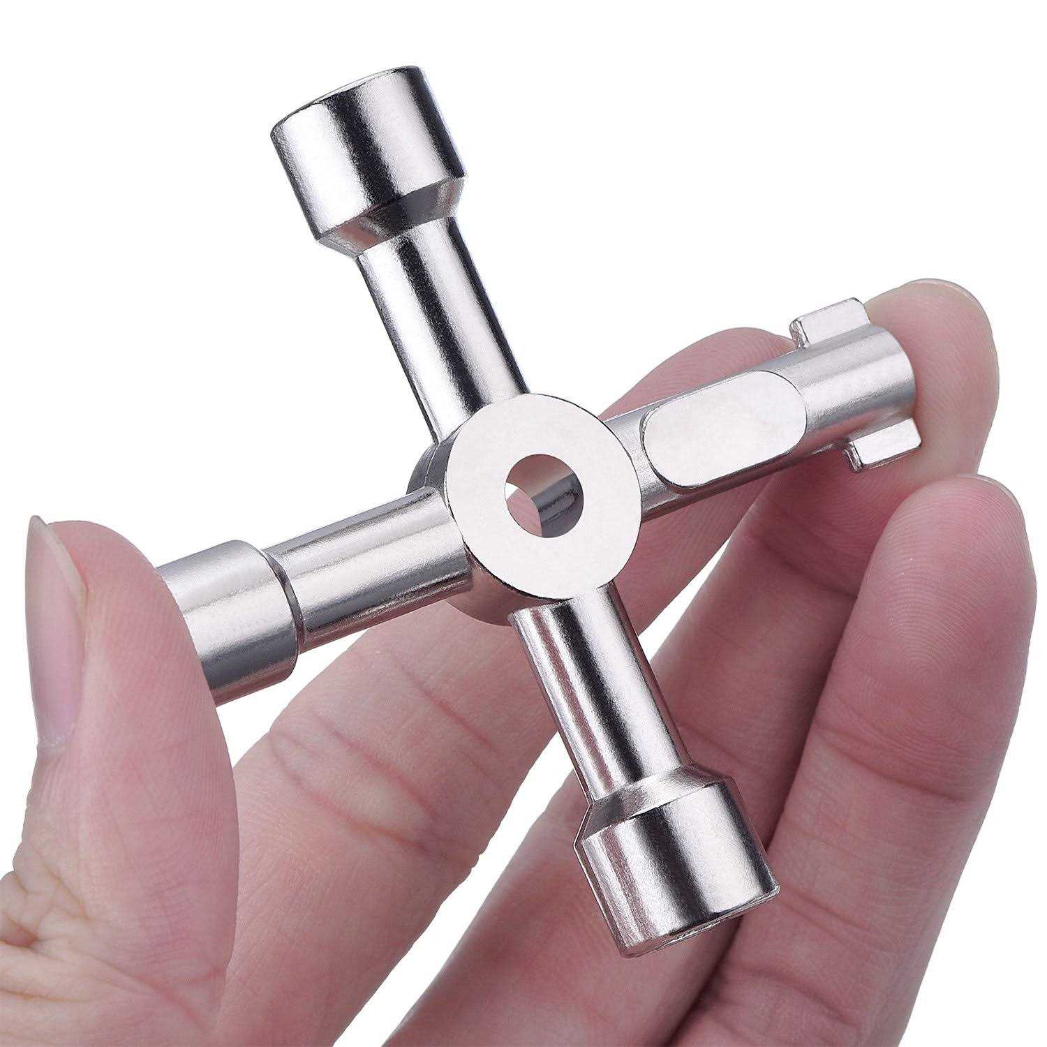 Radiator Key Radiator Bleed 4-Way Multi-Functional Utilities Key for Electric Water Gas Meter Box Cupboard Cabinet Opening Key (Silver) Material: this silver utility key designs with a cross shape, that is made of zinc alloy with good quality, it is sturdy and durable, you can apply it for a long lasting time Multi functions: the utility meter key has 4 shapes, including 2 square shapes, 1 triangle, and 1 key shape showed in the picture, it is functional and can be applied so long as according to the size and shape Dimension: the 4-way utility key measures 7.2 x 7.2 x 1.3 cm/ 2.83 x 2.83 x 0.51 inches, proper size for you to carry it hands or put it in your bag Wide application: the multi-functional keys can serve as practical wrench, and turn the screws, suitable for many valves of electric, water, gas, train, cabinet, elevator, etc. Carry easily: the crossing key is 56 g in weight, and there is a hole in the middle of the cross key, it can be hung on the key ring for easy carry 4-way multi-functional utility key for opening electric water gas meter cupboard cabinet, silver Durable material: This silver utility key designs with a cross shape, that is made of zinc alloy with good quality, it is sturdy and durable, you can apply it for a long lasting time. Functions: The utility meter key has 4 different shapes, which can open boxes, meters, cupboards so long as according with the size and shape. Easy to carry: Proper size for you to carry it hands or put it in your bag, and there is a hole in the middle of the cross key, it can be hung on the key ring for easy carry. Usage: The multi-functional keys can serve as practical wrench, and turn the screws, suitable for many valves of electric, water, gas, train, cabinet, elevator, etc. Specification: Material: zinc alloy Color: silver Size: 7.2 x 7.2 x 1.3 cm/ 2.83 x 2.83 x 0.51 inches Weight: 56 g Package: bag Package contents: 1 x Utility key