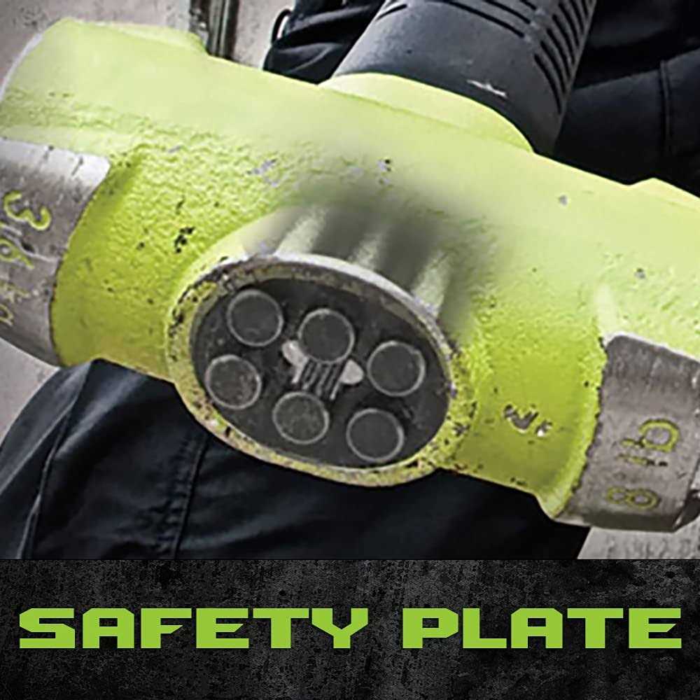 Features and Benefits: Unbreakable Handle Technology and steel core design prevents breaking during overstrikes Hi-Vis green easily identifiable on jobsite and Flat Head to stand upright for easy reach Safety plate locks head firmly to handle eliminating head dislodging Non-slip grip textured handle and Lanyard Hole to safely secure sledge to your wrist Anti-vibe neck ergonomically designed to prevent injury from repeated jobsite use The Wilton 20616 6 Lb Head, 16 Inch Unbreakable Handle Bash Sledge Hammer is,without a doubt, the toughest sledge ever built. The molten steel bar reinforcement and a locking steel plate that holds the head to the handle means the BASH will hold up when you really need it. Tested to 25,000 overstrikes, the Wilton BASH hammer puts traditional wood and fiberglass hammers to shame. Shorter 16″handle provides better grip and leverage while striking. Larger 6 Lb heads combined with shorter handles ensure precise contact.