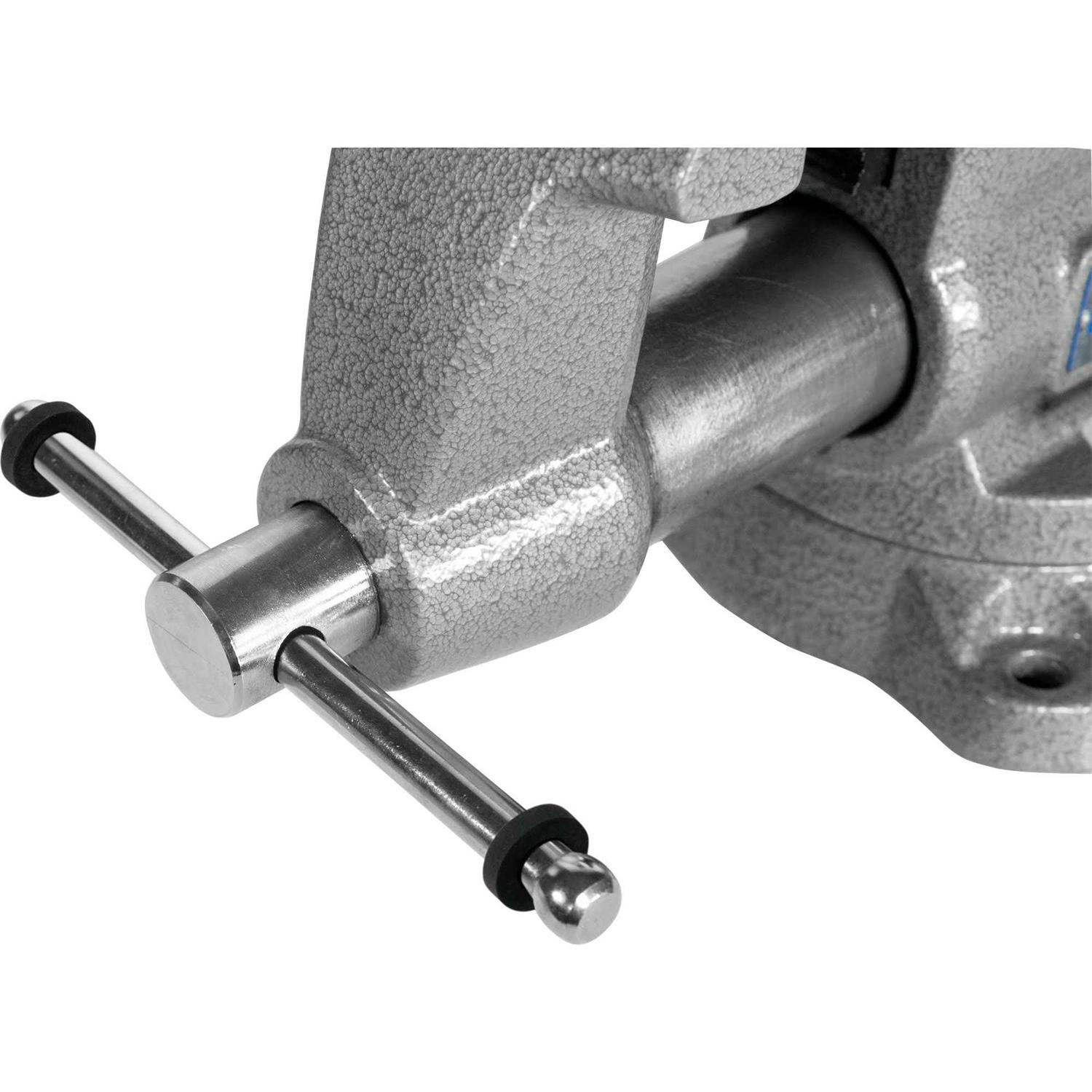 This Wilton Mechanic’s Pro Vise with Swivel Base and 4 1/2in. jaw width features a ductile iron moveable jaw and base, giving it exceptional durability at a lighter weight. A precision round slide bar eliminates movement in the front jaw regardless of opened distance. Has a 360° swivel base. Versatile design for a wide range of uses. Lifetime limited warranty . Swivel base rotates 360° and has double lockdowns ensuring maximum stability Precision round slide bar eliminates movement in the front jaw regardless of opened distance Enclosed spindle keeps lubricants in and contaminants out for smooth operation Innovative thrust bearing makes it easier to apply and release the vise, helping to deliver greater clamping force Large anvil work surface accommodates a wide range of striking needs Forged using premium materials for unbeatable durability 4 1/2in. jaw width, 4in. jaw opening, 3 1/2in. throat depth Model Number: 28810. Age Group: adult.