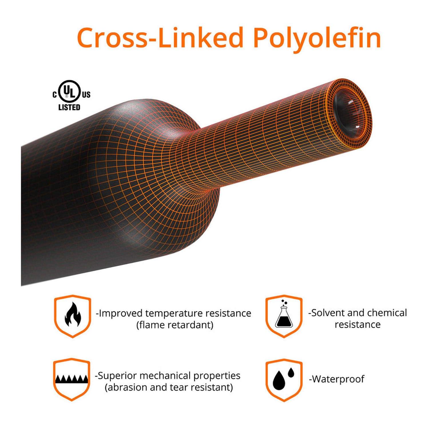 - GLUE INSIDE – When heat is applied, adhesive comes out and seals the connection, creating waterproof and long-lasting insulation.