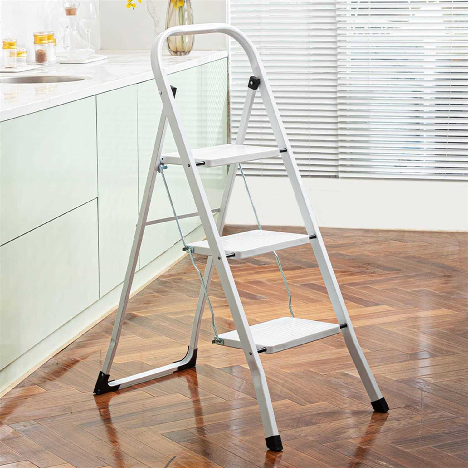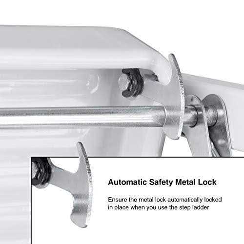 This fits your . by entering your model number. 【GS CERTIFICATE】- For quality and safety of product, our 3 step ladder stool has been approved by TUV with GS Certificate. The Wohous 3-Step Ladder is designed with sturdy steel material and an oversized top platform that offers heel-to-toe foot support, eliminating foot pain and fatigue and providing the user a completely stable, comfortable place to stand while you are working. 【SIZE OF STEP LADDER】- Open: 30.13″L X 18.7″W X 43.2″H (Top Pedal), Folded: 45.27H X 18.7″L X 2.2″W, Net Weight: 12.5 pounds, Maximum load: 330 lbs. 【SPACE-SAVING】- Space-Saving Design of lightweight step stool escaleras folded to just 2.2″ D for storage. Folds compactly to fit in a narrow place-in your garage, under the bed or in a convenient corner. 【EASY TO USE】No need to assemble. Unpack it then use it. Easy folding capability combined with a simple lock mechanism allow for convenient storage and transportation. Just tilt stepladder forward and release the metal lock which can be hidden on the bottom of the top pedal, then lift up the back of the top pedal. You can fold it easily. 【WIDE USAGE】- With a convenient handgrip, making the portable step ladder stools easy to climb and carry. The stepladders also can be used as a Chair or Little Pet Step Stool.The white frame gives an attractive appearance, which matches well with home decoration. Great for use in the kitchen, garage, laundry room,closet, office, RV, while cleaning, doing home repairs. Wohous Folding 3 Step Stool is a perfect tool when you need a little extra height and will be held up well to repeated use. Brand Wohous Color 3 Step Material Alloy Steel, Metal Item Weight 12.5 Pounds Load Capacity 330 Pounds