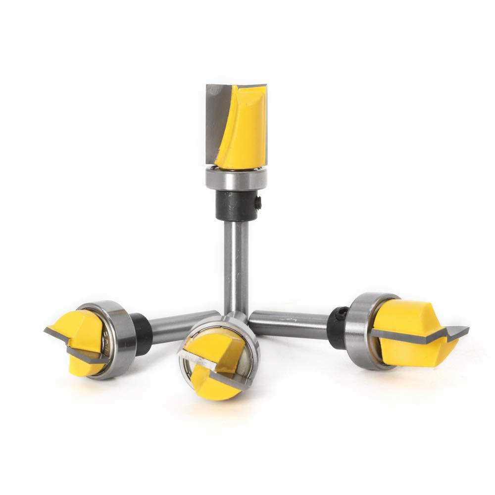 Flush Trim Router Bit will rout clean cutouts for hinges or other shallow cutout projects. C3 Micro-grain Tungsten Carbide Cutters, Solid Hardened Steel Bodies with Anti-Kickback Design. Two flute carbide cutters with 1/4″ shank. Perfect for routing door hinge mortises using a hinge template. Shank Diameter: 1/4″, Cutting Diameter: 3/4″; Cutting Length: 13/16″, 7/16″, 5/8″, 1/4″. Ideal for plywood, wooden door frames, wooden window frames, cabinets and boxes,solid wood, MDF, particle board, etc.