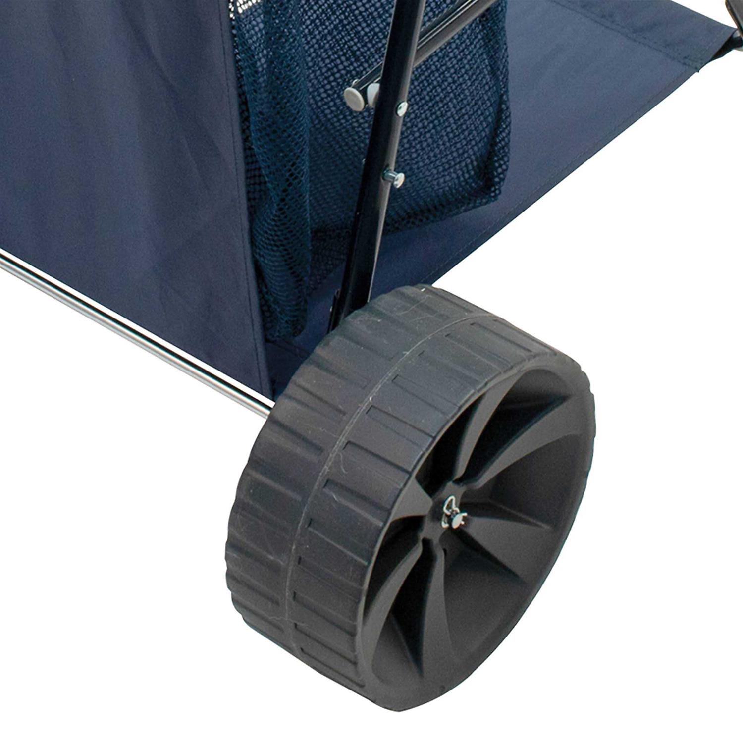This Wonder Wheeler Plus wide wheels is a perfect way to transport all your chairs and belongings to the beach. It features a 10 diameter, dual 4 inch wide front pivot wheels and large mesh storage pouch. It holds up to 4 beach chairs.