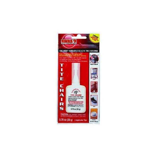 Specially formulated instant glue is super strong, fast acting and long lasting. Eliminates loose and noisy joints found in most types of wood furniture. Unlike many products that swell the wood for a temporary repair, Wonderlok ‘Em also contains an adhesive that penetrates deep into loose joints and sets up in seconds. Tite Chairs is not a wood sweller, but is actually a super powerful adhesive with almost 4000 pounds per square inch of holding power. Not only is it super strong, Tite Chairs is also super thin. This means that it can penetrate loose joints in chairs and other furniture without having to take them apart! That means less time for the repair and less mess to clean up. Tite Chairs is not just for furniture; it works great on loose tool handles, staircase spindles and dovetail joints, as well as metal, rubber, glass and most ceramics. Easy to apply 20 gram Instant loose wood chair repair From a little loose to falling apart, fix in minutes Works great on any wood joint, as well as metal, rubber, glass and most ceramics No need to take the chair apart Just trace the loose joints with special applicator tip.