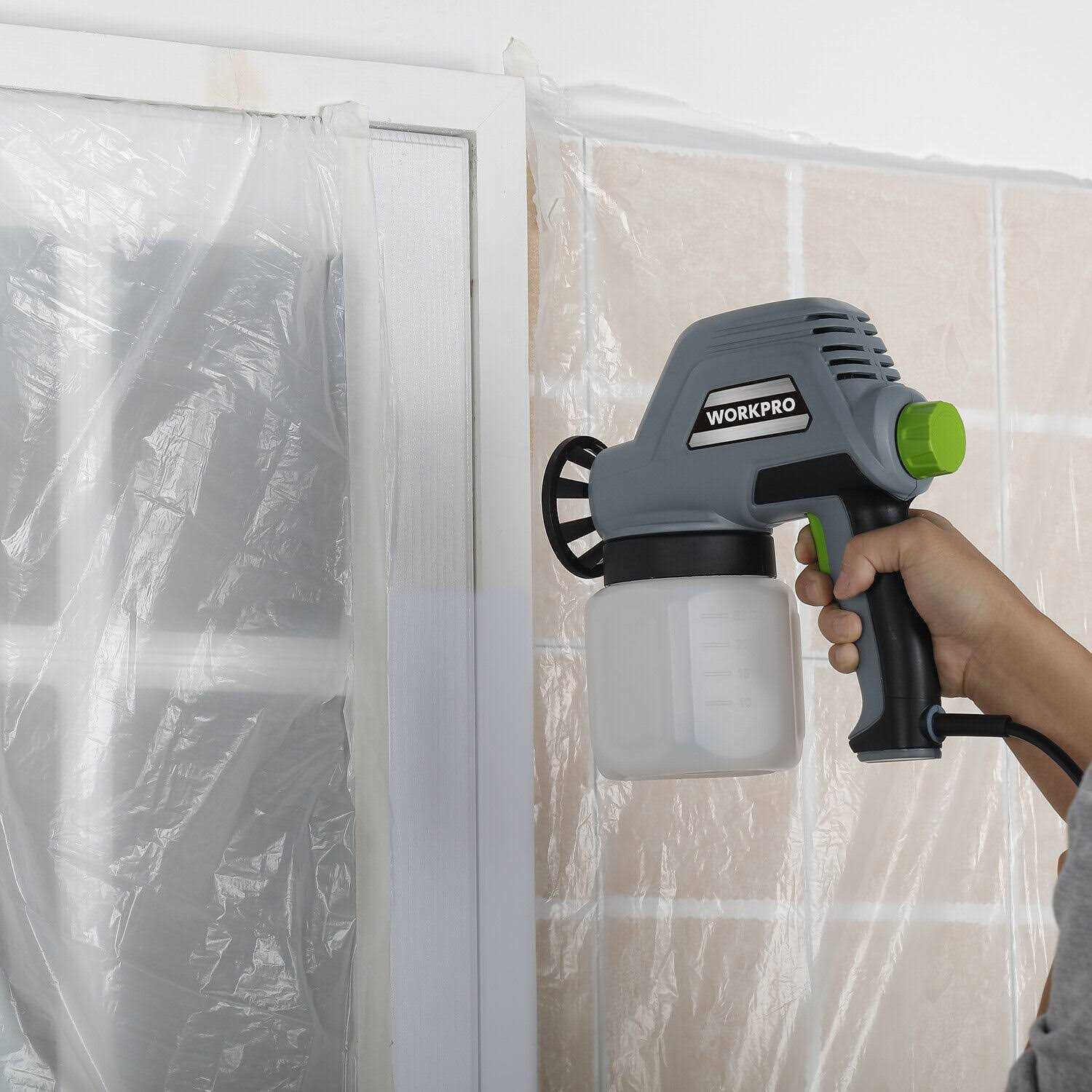 The WorkPro Paint Sprayer is a flexible solution for any type of residential painting DIY project. This electric paint sprayer has an 800ml paint container that can release 60 din/sec in viscosity at a max flow rate of 380ml/min. With improved design and spray control, the amount of paint released is flexibly adjusted to provide a smooth, even spray pattern every time. Use this paint sprayer for seamless indoor or outdoor painting projects with less mess and clean up. Its an ideal paint sprayer for any homeowner who wants to apply a superior finish on exterior siding, decks, fences, garage doors, sheds, walls, ceilings, and more. Use this sprayer with paint, stain, primer, and sealer to tackle all your painting needs. Achieving professional painting jobs can be done easily with WorkPro Paint Sprayer!