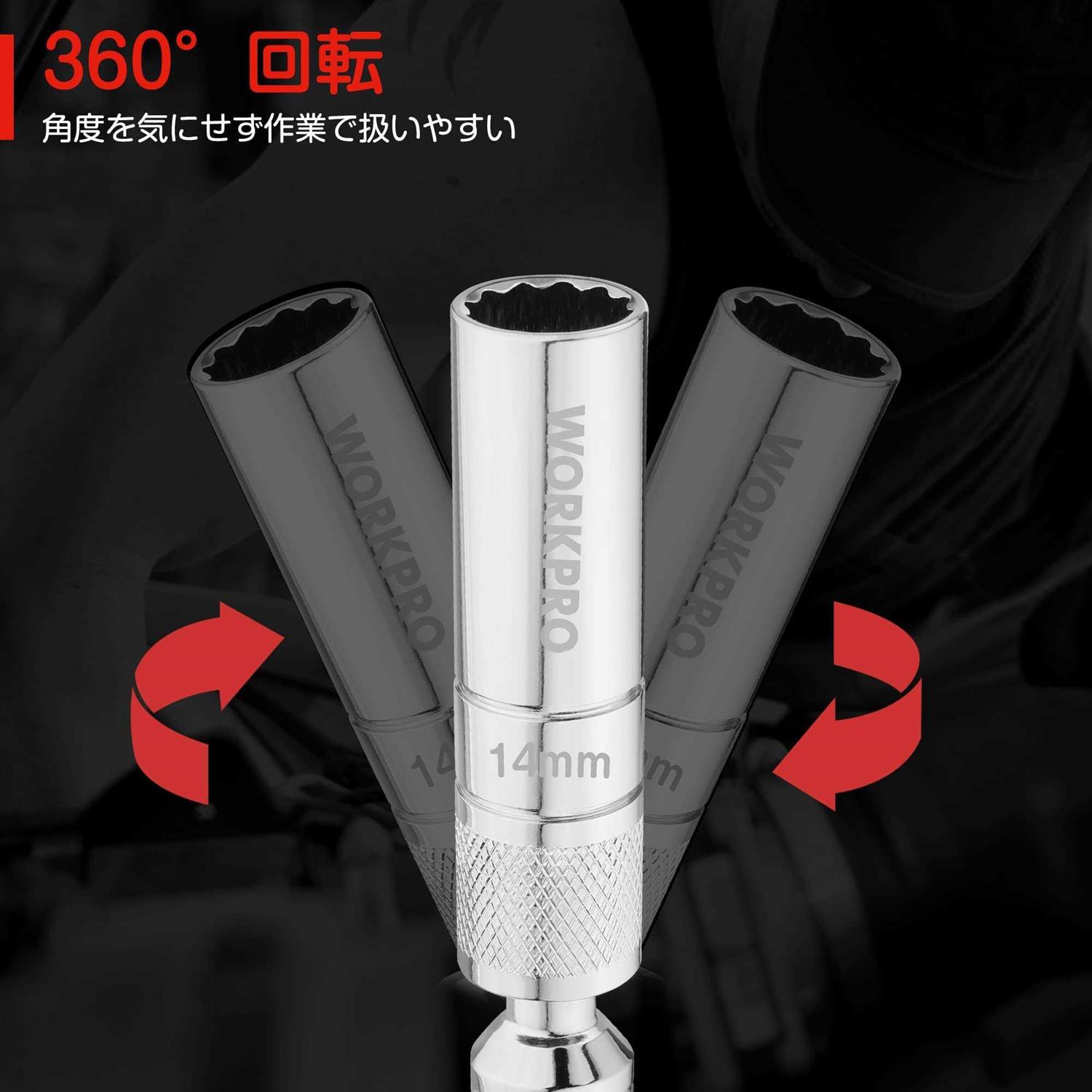 WorkPro 14mm Magnetic Swivel Spark Plug Socket, 3/8″ Drive x 4″ Total Length, Enhanced Magnetic Design with Thin Wall Socket, 360 Degree Swivel, 12