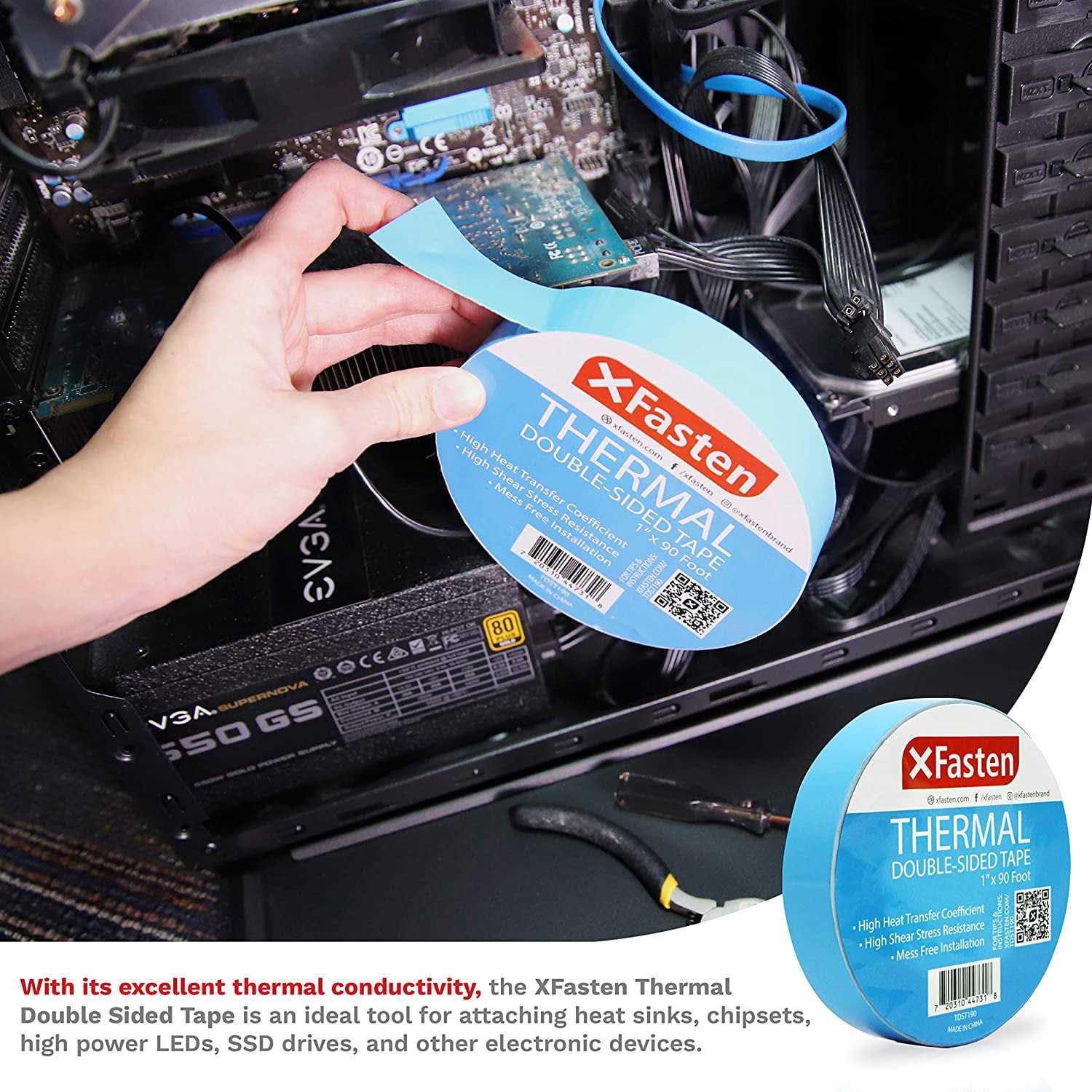 XFasten Thermal Double-Sided Adhesive Tape, 1 inch x 90 Feet, High Thermal Conductivity and Electrical Insulating Thermal Tape for LED Strips, 3D