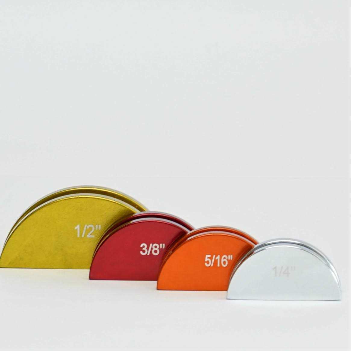 - Color coded alloy mandrels to bend 1/4″, 5/16″, 3/8″, 1/2″, 5/8″, 3/4″ and 7/8″ tubing
