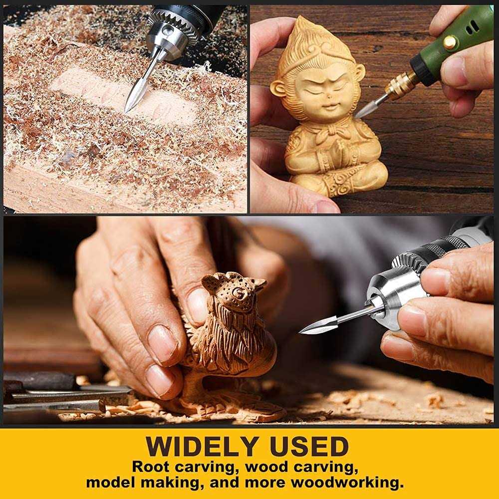 Wood Carving Tools, 5 Pcs Engraving Drill Accessories Bit Wood Crafts Grinding Woodworking Tool with 1/8” Shank Universal Fitment for Rotary Tools