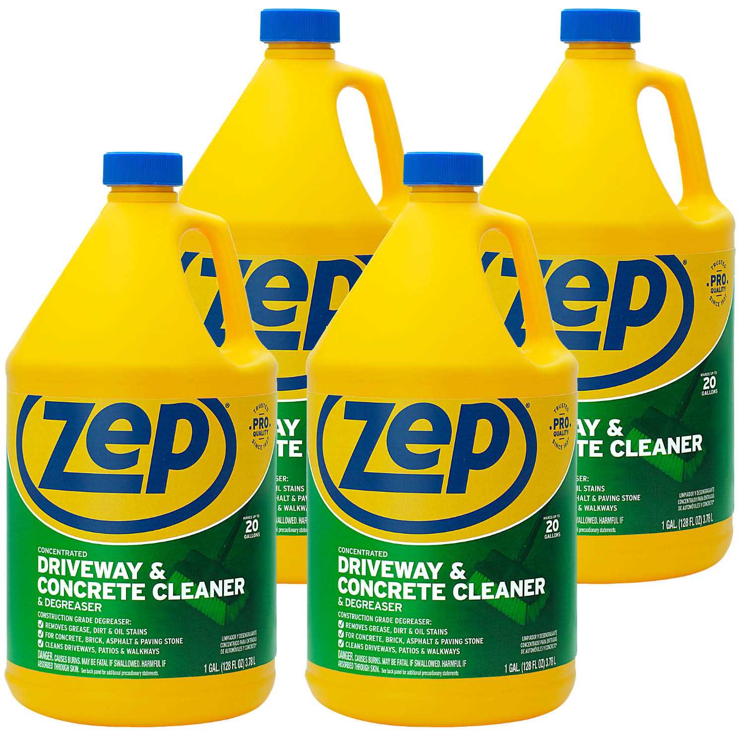 Zep Driveway, Masonry and Concrete Cleaner and Degreaser – 1 Gallon (Case of 4) ZUCON128 – Concentrated Formula Makes 20 Gallons